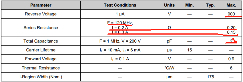 对于一个PIN管,导通电阻加上等效电感即为损耗,反向电容即为隔离度。