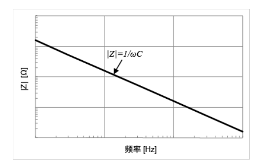 由公式可看出,阻抗大小|Z|如图所示,与频率呈反比趋势減少。由于理想电容器中无损耗,故等价串联电阻(ESR)为零。