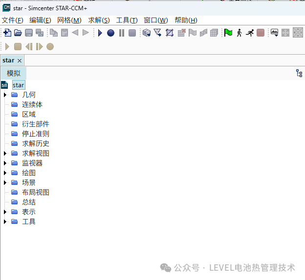 打开 Star CCM + 软件,其界面主要由六个区域构成,每个区域各司其职,共同为用户提供高效的 CFD 计算操作环境。