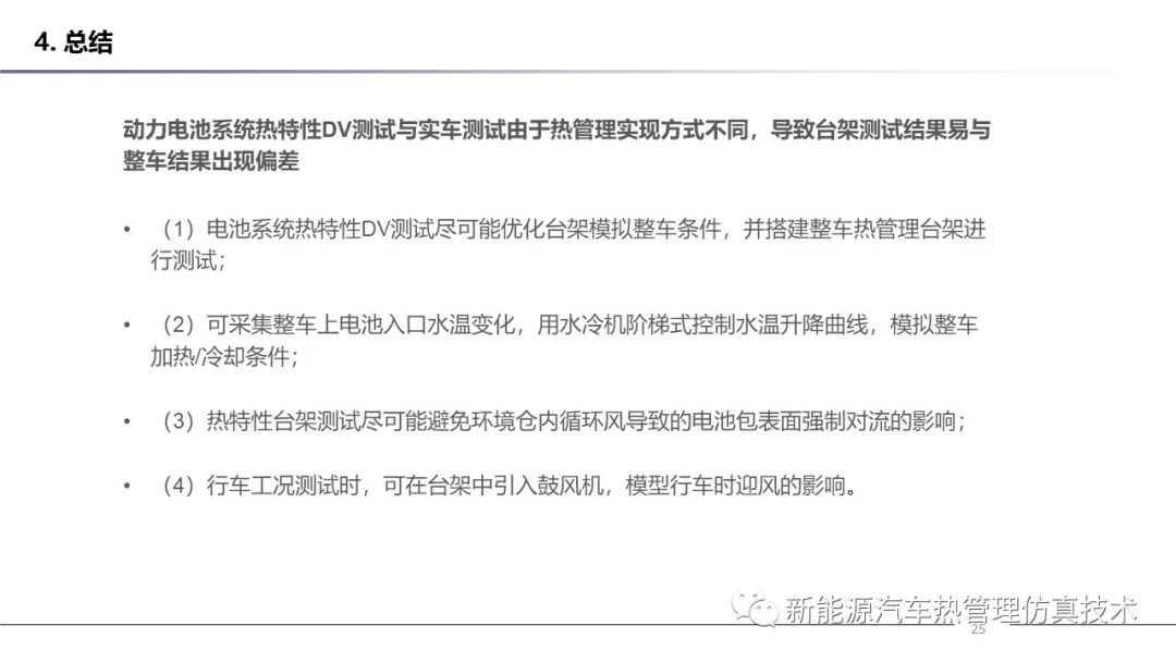 (1)电池系统热特性DV测试尽可能优化台架模拟整车条件,并搭建整车热管理台架进