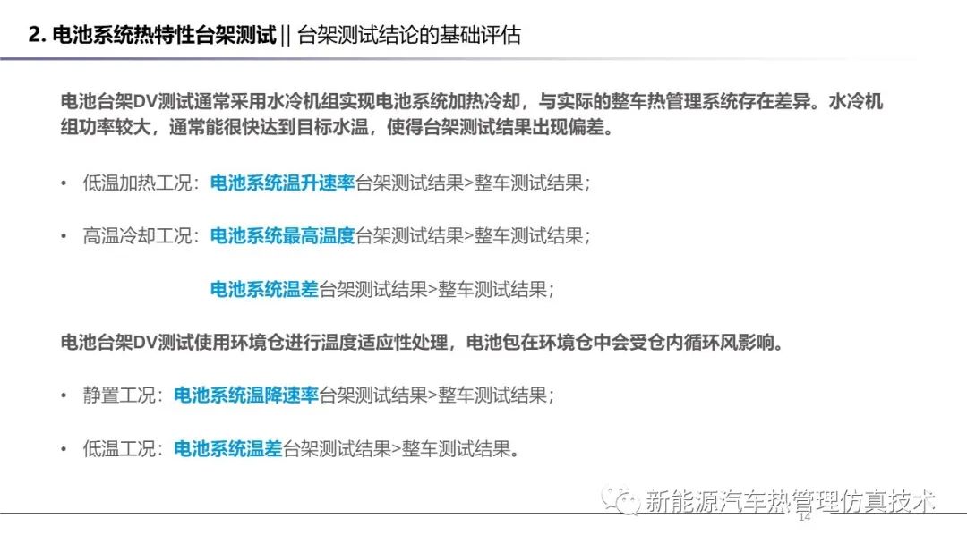 动力电池系统热特性DV测试与实车测试由于热管理实现方式不同,导致台架测试结果易与 整车结果出现偏差