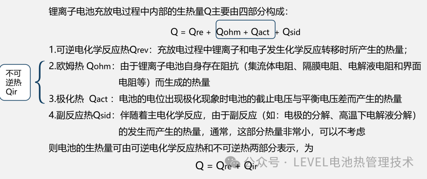 对于锂离子电池来说副反应生成热量极小,因此可以忽略不计,电池内部反应热量只需考虑剩下三部分热量: