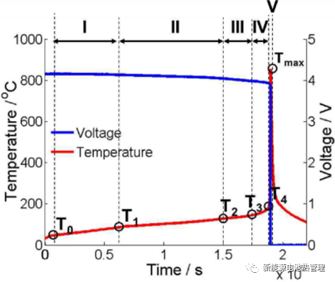 根据热失控的温升曲线做了很细致的阶段划分和温度点判断条件,注意分为自产热温度(T1)、热失控触发温度(T2)、热失控最高温度(T3)这三个关键点。
