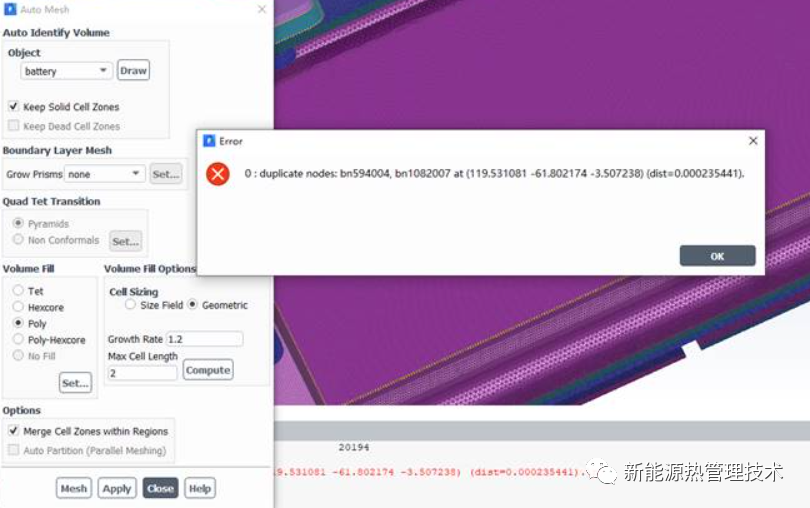 问题描述:面网格调整好后,划分体网格出现这种错误,如图所示: