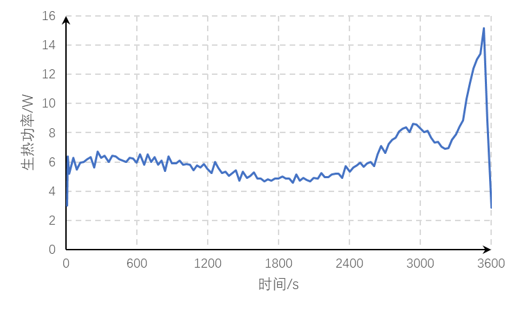 锂电池Pack设计中往往会借助热流体仿真分析来辅助工程师完成pack热管理系统设计,在热管理系统设计阶段,可对Pack、模组或电池进行热场仿真分析,根据仿真结果快速地选择出冷却、加热和保温方式;在冷却子系统设计阶段,可以对Pack、模组或电池(带冷却子系统)进行热场和流场仿真分析,根据仿真结果确定冷却通道设计、冷却介质、冷却入口温度和流量以及风扇或泵的参数等。借助热流体仿真分析工具,大部分的Pack热管理设计工作和部分测试工作都可以在电脑上完成。大量的设计、制造、测试工作可以被省略,Pack设计的成本也会大幅度下降。下面基于案例的方式,介绍一下动力电池热管理仿真分析的基本流程和技巧。该案列液冷系统的设计目标为:在指定工况下运行,电池系统内部电芯的最大温度小于50℃;电芯之间的温差小于等于5℃;液冷系统的压降小于10kPa,依据下图*电芯单体的产热数据,计算在1c满放的情况下电池系统的产热功率。