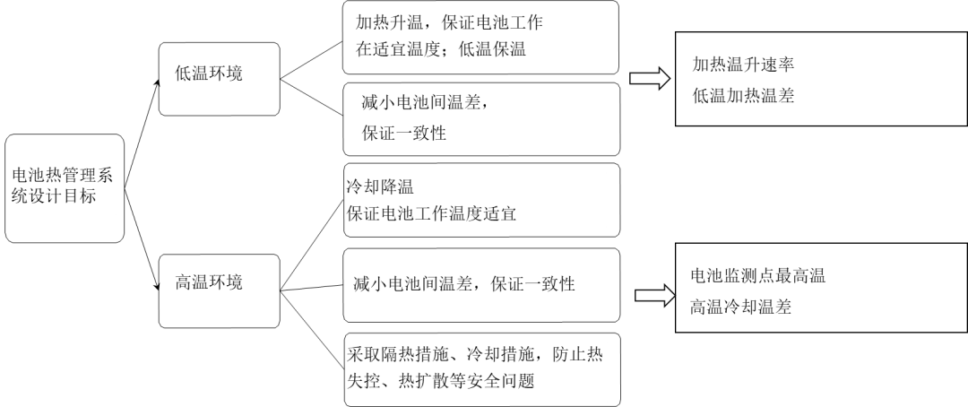 电池热管理系统设计的主要目标是:在考虑空间布置、设计成本、轻量化等条件下,通过加热或冷却控制,保证电池系统工作在相对适宜的工作温度,同时减小单体间温度,保证一致性。热管理系统设计结构图如下: