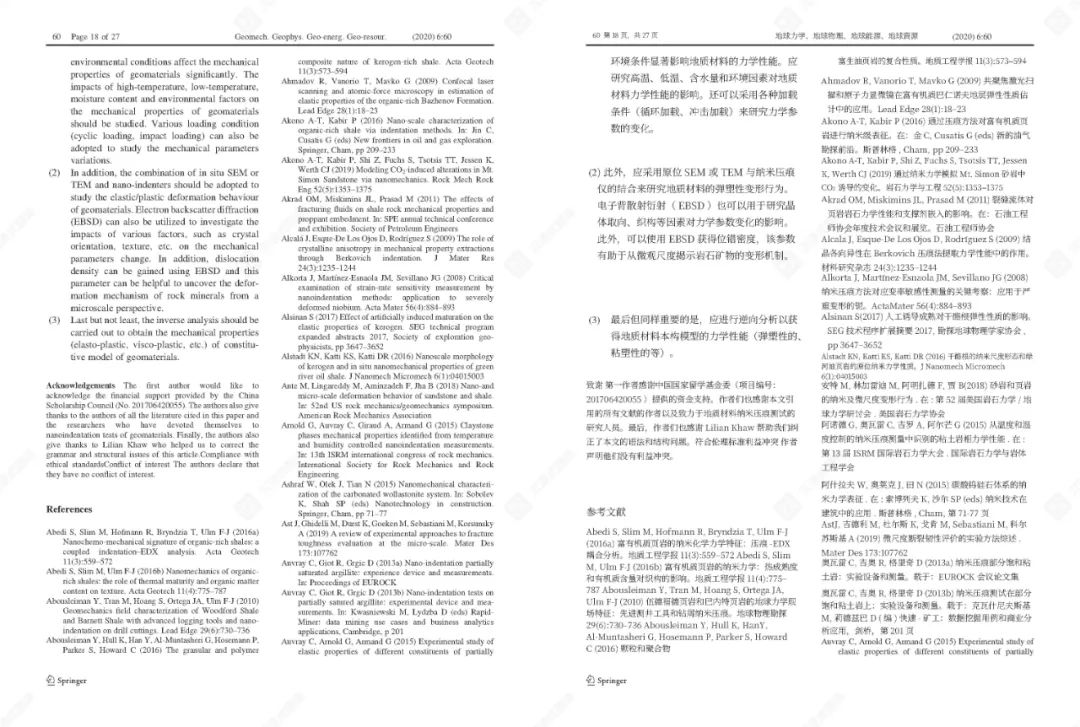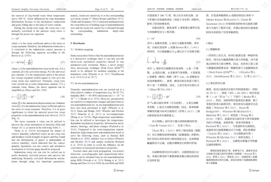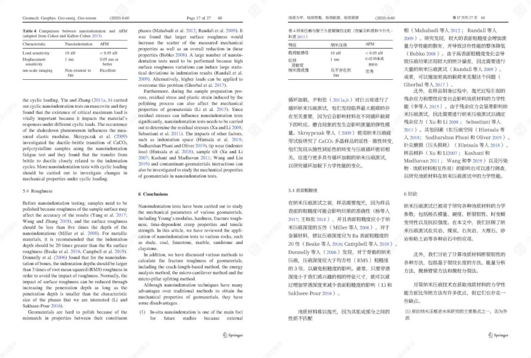 :温度、湿度和化学环境等因素会影响岩石的力学性能。纳米压痕可以用于研究这些环境因素对岩石力学行为的影响 (Maruvanchery, 2020)。