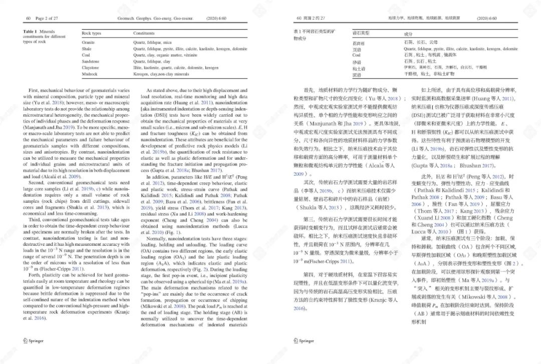 纳米压痕已被广泛应用于岩石力学研究中,主要集中在以下几个方面: