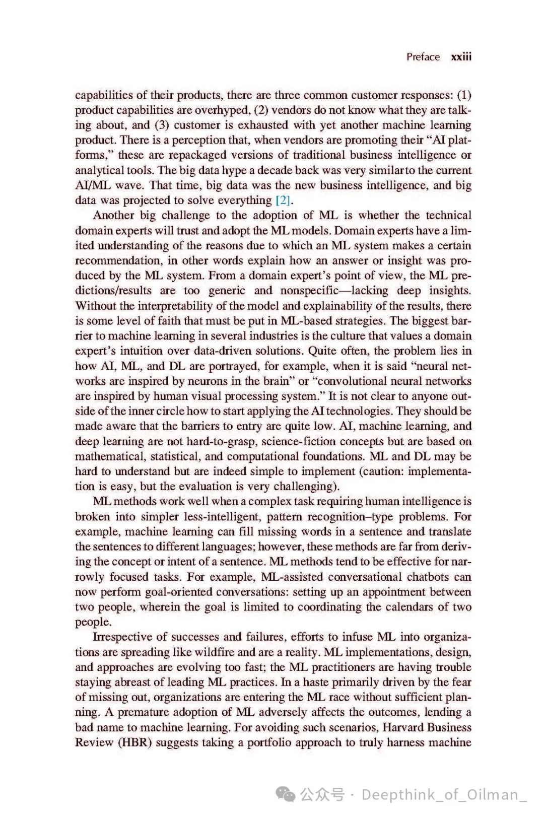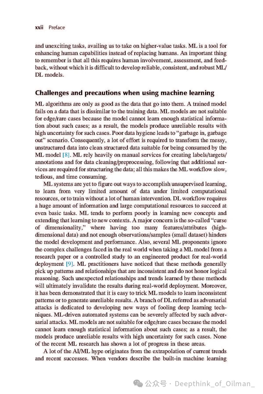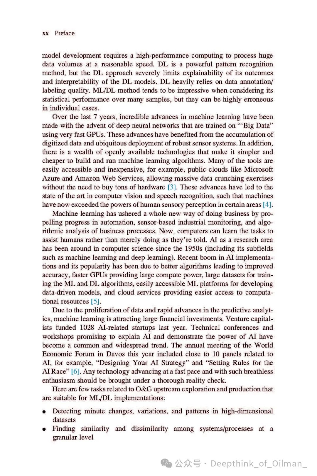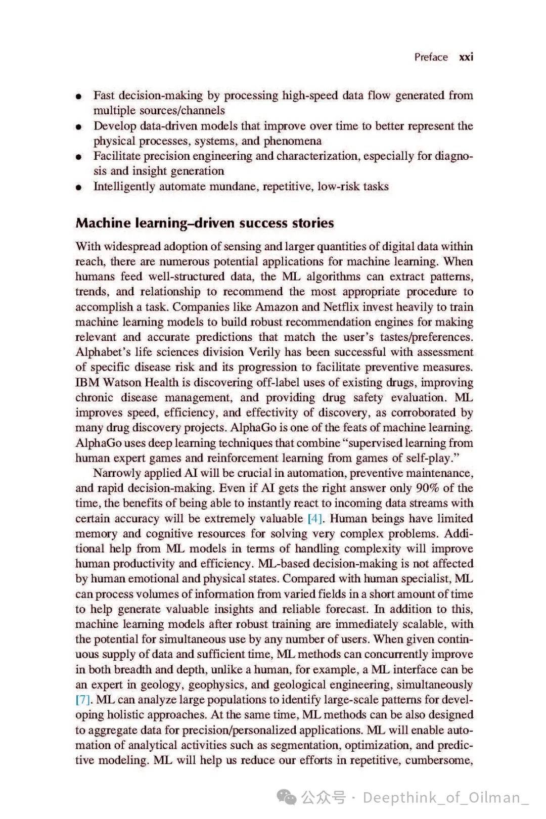 《Machine Learning for Subsurface Characterization》由Siddharth Misra、Hao Li与Jiabo He三位学者合著,封面以蓝棕色调构建的虚拟现实空间为视觉隐喻,模糊的手指触摸全息屏幕动作与下方土壤层理交错的设计,暗示着机器学习技术正以数字触角穿透地表,解码地质密码的学科革命。六个环绕主标题的六边形技术标签——“模式识别”“神经网络”“数据挖掘”等关键词如星座般悬浮,既勾勒出地下表征的知识拓扑网络,又暗合机器学习算法中多维特征提取的思维框架。封面背景中若隐若现的二进制代码流(100110、1.101等)与“X/O”符号矩阵,恰似训练数据集中的标记样本,隐喻着岩芯数据、测井曲线与地震属性在算法黑箱中的参数化重生。本书以“算法驱动的地质认知跃迁”为核心命题,系统阐释机器学习如何颠覆传统地球物理与地质建模方法论。从封面土壤层理的物性异质性出发,作者构建起“数据清洗—特征工程—模型迭代”的全链条技术体系:卷积神经网络(CNN)被赋予透视三维地震数据体的新维度,在墨西哥湾盐丘识别中实现96%的形态还原精度;随机森林算法则化身地层时代的解译者,通过测井曲线与岩屑数据的关联学习,重构鄂尔多斯盆地古沉积环境的水动力条件。书中独创的“地质语义嵌入”技术,将岩石薄片显微图像转化为高维向量,使矿物组合分类准确率较传统图像分析提升40%,犹如封面六边形网络中的“PATTERN RECOGNITION”标签在数字空间的具象实践。针对油气勘探中的特殊挑战,本书专设“小样本学习”创新章节:迁移学习框架在北海油田的应用案例中,仅需300组标定数据即可实现储层孔隙度的跨区块预测;强化学习代理则在地下流体模拟器中自主探索最优注采策略,其决策逻辑与封面“PROBLEM SOLVING”的X/O路径选择形成巧妙呼应。作者团队更将对抗生成网络(GAN)引入地质建模领域,通过合成与真实数据分布的博弈,批量生成涵盖断层、不整合面的虚拟地质模型,为勘探风险量化提供百万级训练样本。封面右下角的棕褐色土壤裂纹,在此语境下转化为储层裂缝导流能力的非线性回归问题,而“ALGORITHM”标签则指向书中贝叶斯优化器对水力压裂参数的动态寻优。作为跨界融合的里程碑式著作,本书不仅为石油地质学家提供从监督学习到深度强化学习的工具箱,其“自动化—智能化”的技术演进路线更重塑了地下表征的科研范式。当读者凝视封面中央悬浮的“MACHINE LEARNING”核心六边形时,实际已踏入地质大数据与人工智能共生的新纪元——这里的每个算法都不再是黑箱,而是照亮地下迷宫的数字化火炬。 著作权归作者所有,欢迎分享,未经许可,不得转载