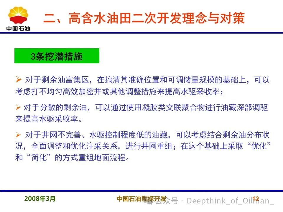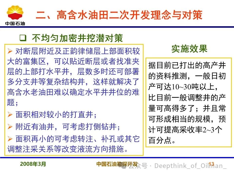 - 井网优化:加密调整井网,部署水平井、侧钻井靶向剩余油富集区。