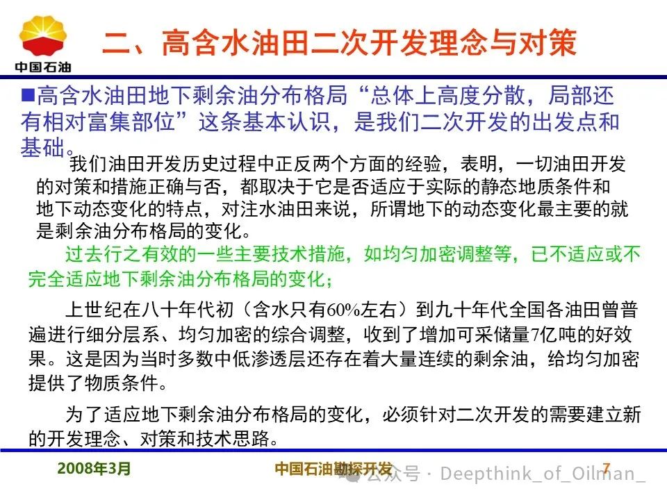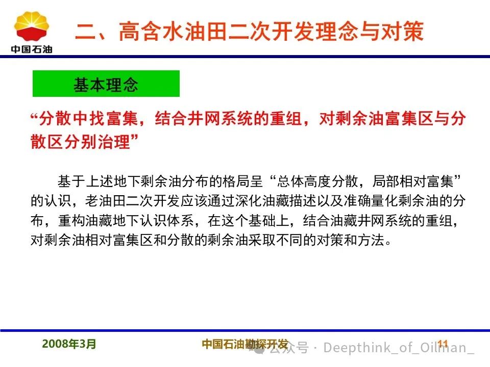 高含水油田二次开发是油田开发中后期的核心战略,旨在通过技术升级、管理优化和模式创新,挖掘剩余油潜力,提高采收率,实现老油田经济有效开发。以下是其理念、对策与技术思路的详细阐述: