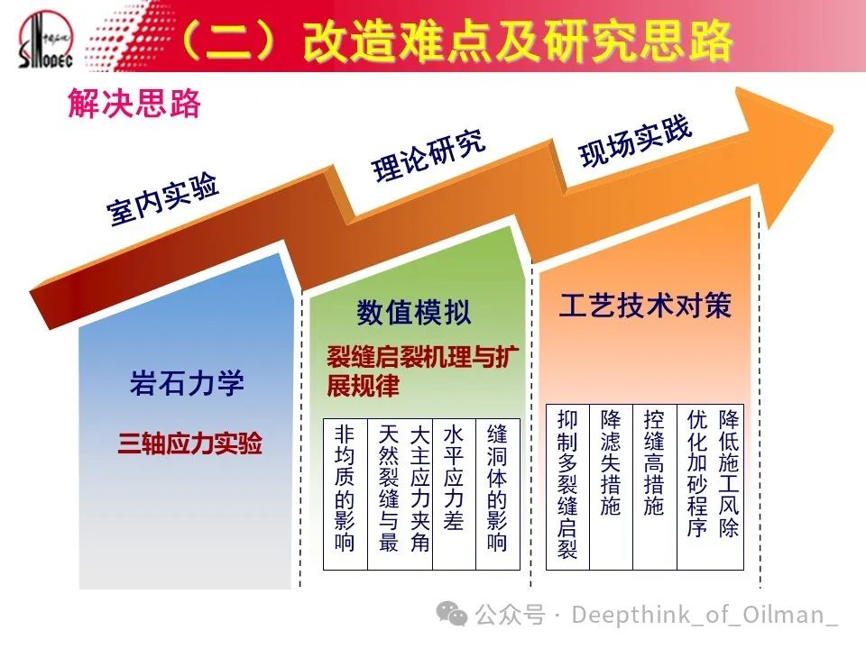 裂缝扩展机理的研究涉及全三维压裂模型的构建和复杂介质条件下裂缝扩展数学模型的建立。这些模型基于碳酸盐岩岩心实验和压裂井的分析成果,结合数值计算方法和损伤力学方法。