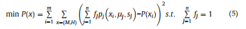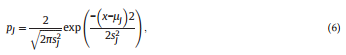 式中,μJ和sJ为相J=1, n时x= (M, H)的均值和标准差;fJ为组成非均相材料的相的体积分数;P(xi)为归一化频率的测量值;M是将问题离散化的区间数(bin);pJ为单相理论概率密度函数值,假设其为正态分布: