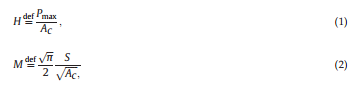 除投影面积ac外,确定H和M所需的所有量均直接从P-h曲线中获得(图3b)。其中最主要的是卸载压痕刚度¼ð Þ dP=dh h¼hmax和完全卸载后材料表面残余压痕深度hf(图3a)。接触面积aac可以使用Oliver和farr方法从最大深度hmax推断。对于均质材料系统,通过对数据应用线性弹性模型,可以将压痕模us m与压痕材料的弹性常数联系起。在各向同性情况下,M为平面应力弹性模量: