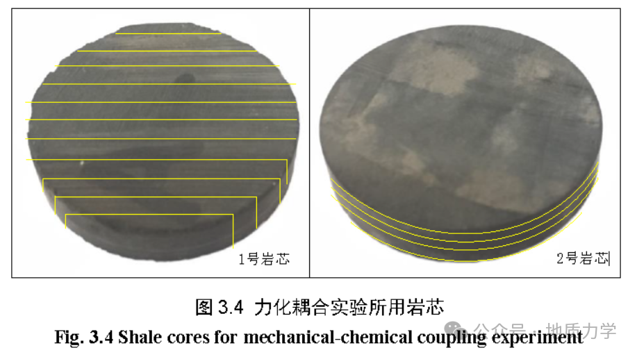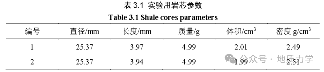 为研究流体在水力压差和化学势差下沿页岩层理方向和垂直层理方向的压力传递相关参数,实验所用页岩岩芯的角度取向分别沿层理方向和垂直层理方向,如图3.4 所示。实验所用岩芯数据如表3.1 所示。