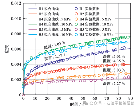 岩石力学三轴实验、页岩蠕变实验[43]表明,深层—超深层页岩在高温高压环境下黏弹性变形行为与弹塑性破裂机理复杂,页岩力学性能受到温度、湿度和应力等环境影响,会发生蠕变、刚度退化、塑性屈服、时间依赖和路径相关等力学行为(图3)。