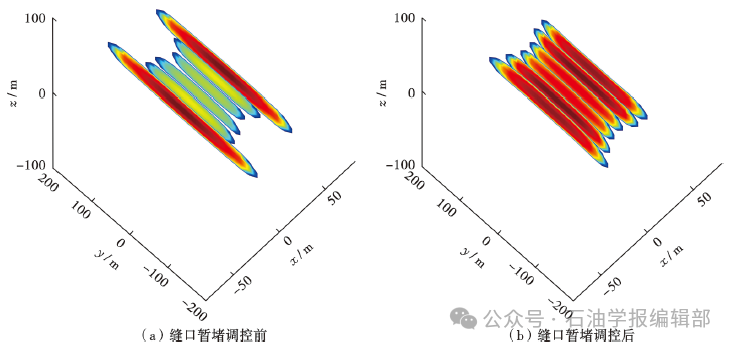 深层—超深层页岩气压裂时,高地应力差导致裂缝簇间距更小,簇裂缝应力干扰效应增强,同时受井筒应力和力学参数非均质性分布影响,簇裂缝非均匀延伸极其严重,部分裂缝延伸过长,部分裂缝延伸不足甚至无法起裂,严重影响缝网建造质量。需要发展缝口暂堵转向裂缝延伸理论模型,优化暂堵时机、暂堵材料用量、暂堵次数等核心参数设计方法,建立促进裂缝均匀延伸调控技术(图12)[127-128],实现多簇裂缝“抑长促短、均匀延伸”。