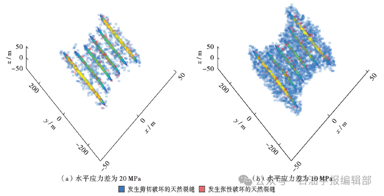 深层—超深层页岩褶皱、断层发育,复杂构造改变局部应力分布和天然裂缝群分布,不同类型构造对局部应力的影响也存在本质差异[47-48],叠加深层—超深层页岩原始应力,加剧储层应力分布的非均匀性,结合井筒与构造的空间关系,不同构造、不同井筒布置下的缝网建造差异大,控制机制有待揭示(图6)[49-51]。