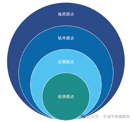 目前地质—工程一体化主要是地质—评价一体化、地质—钻井一体化、地质—压裂一体化[134],虽然一直在提地质—工程一体化,但实践中更多的仍然是“各司其职、互不耦合”。地质—工程一体化的实质是寻求页岩气开发甜点,而地质甜点、钻井甜点、压裂甜点、经济甜点的交集才是真正的页岩气开发甜点(图14)[28]。其中,压裂甜点是在精细评价缝网可压性基础上,精准模拟缝网体积,差异化设计关键参数,实现一区一案、一井一案,一段一策、一簇一策的精细化压裂设计。