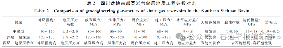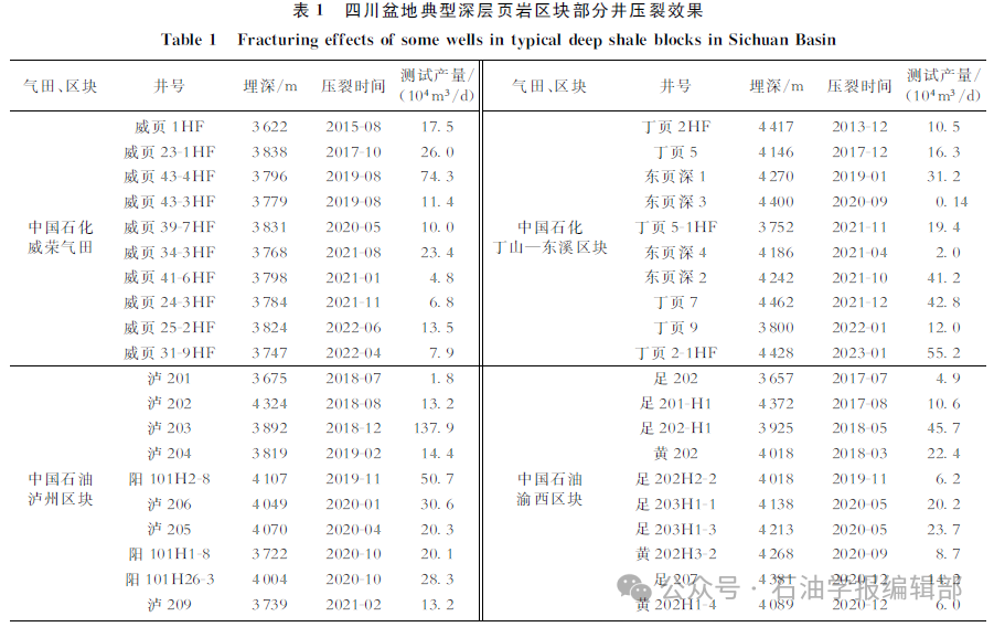 随着深层页岩气勘探的不断发现,深层页岩气压裂研究快速跟进,压裂建产初见成效,但压裂效果差异明显(表1),压后效果主控因素不明、缝网扩展机理不清、缝网设计方法不适应、压裂工艺缺乏针对性。