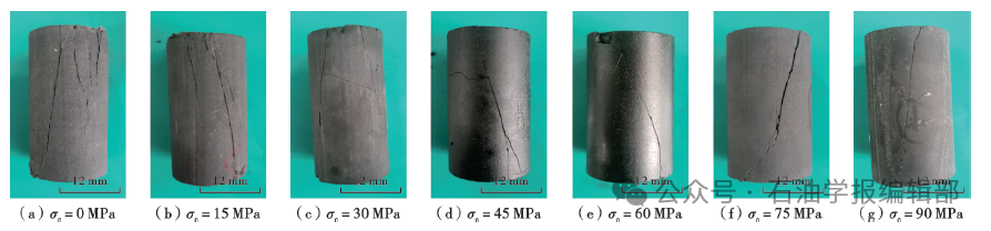 岩石力学三轴实验表明[40-41],围压(σc)为0~15 MPa时,以多裂纹劈裂为主;围压为30~45 MPa时,以多条张性和剪性裂纹为主;围压在60 MPa以上时,以单裂纹为主(图1),深层—超深层页岩压裂形成分支缝难度大。
