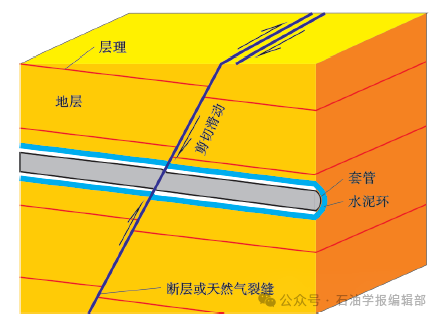 诱发套变主要由套管强度降低和外部载荷变化两个因素引起[98-99],页岩气压裂套变与天然断层激活滑移直接相关[100-104],地应力场、断层产状、孔隙压力是影响断层稳定性的主要因素[105-109]。需要结合储层地质力学环境表征、断层位移发生临界条件、井筒变形强度等理论揭示压裂套变机制,构建压裂套变工程控制方法,为优化压裂套变风险井施工参数设计提供基础。