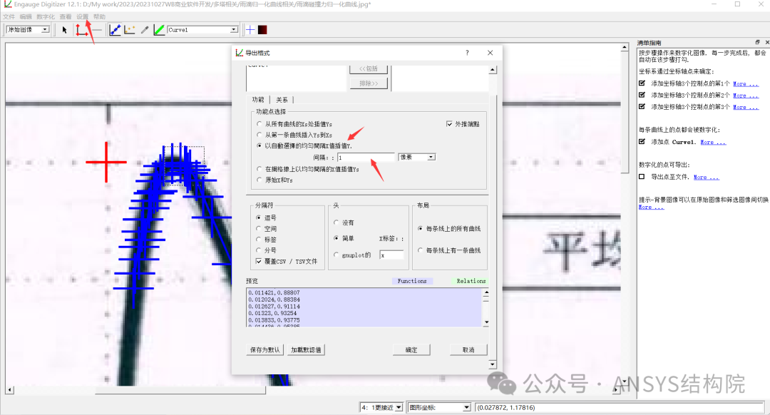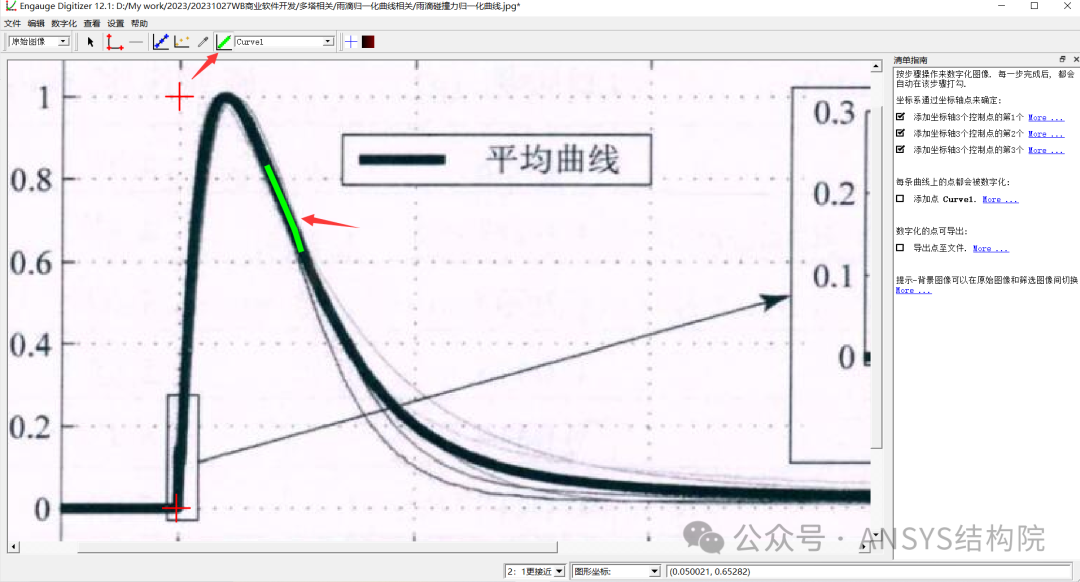 2、提取数据基本分为三步走:设定坐标系,选取曲线,导出数据。