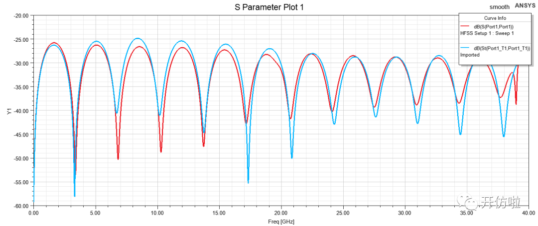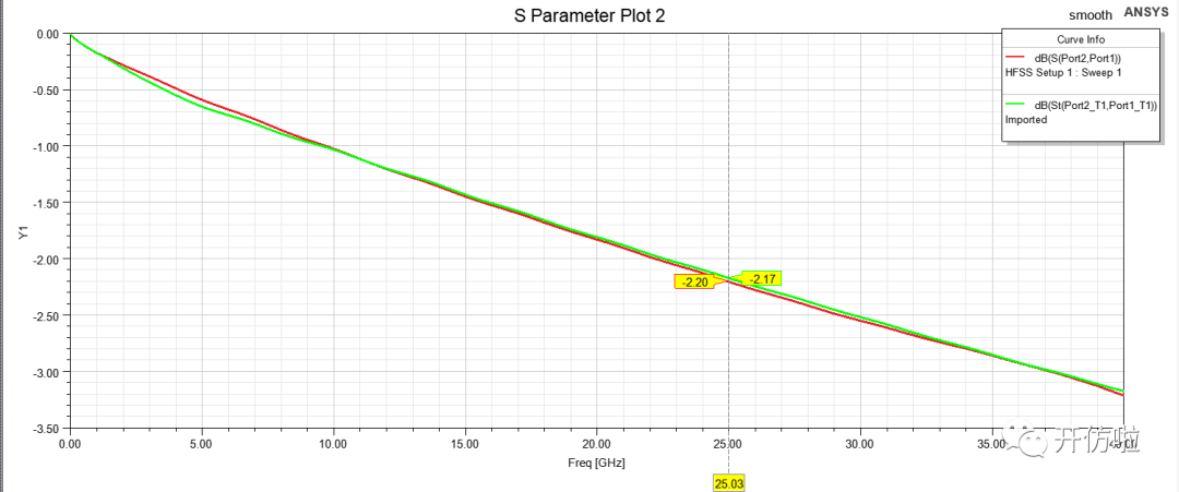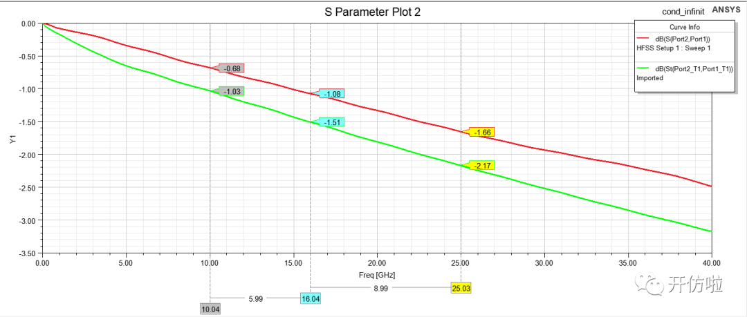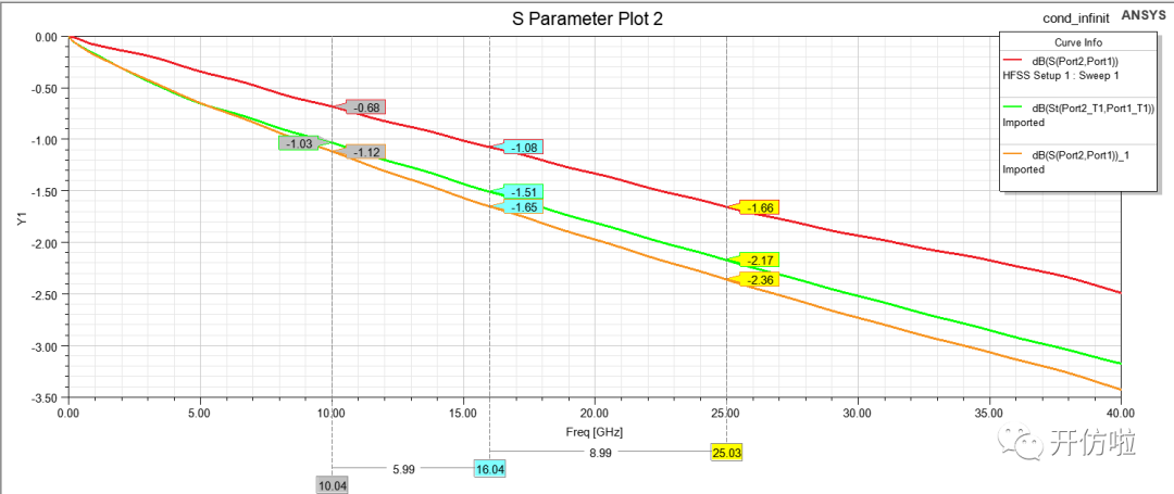 通过对比,可以看见,二者仿真结果非常一致,所以之后导体损耗的仿真和对比就用3Dlayout进行。