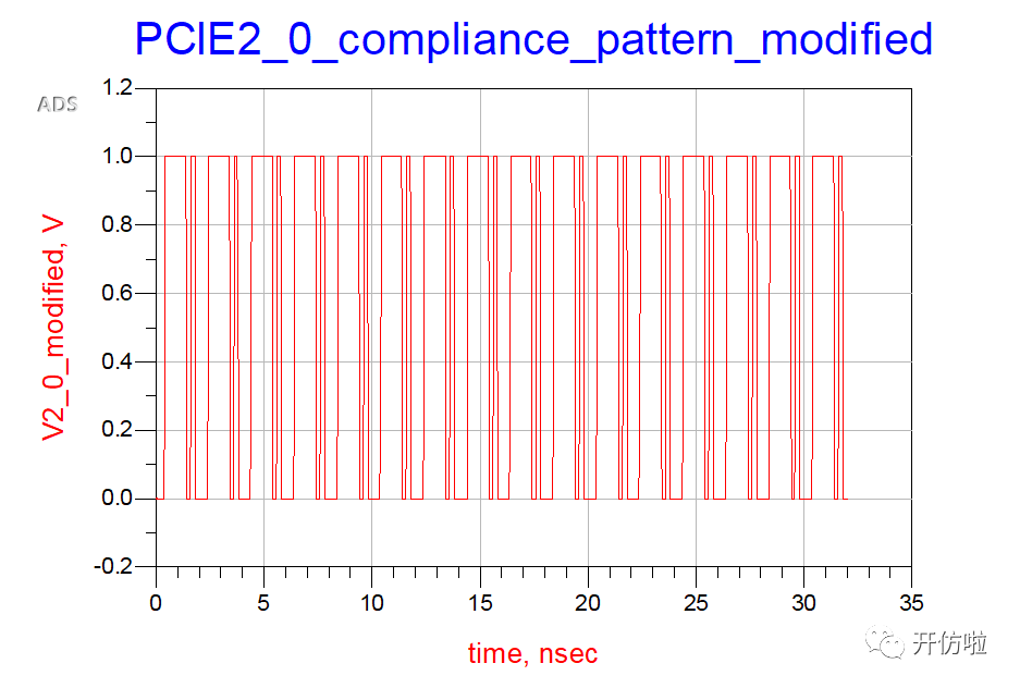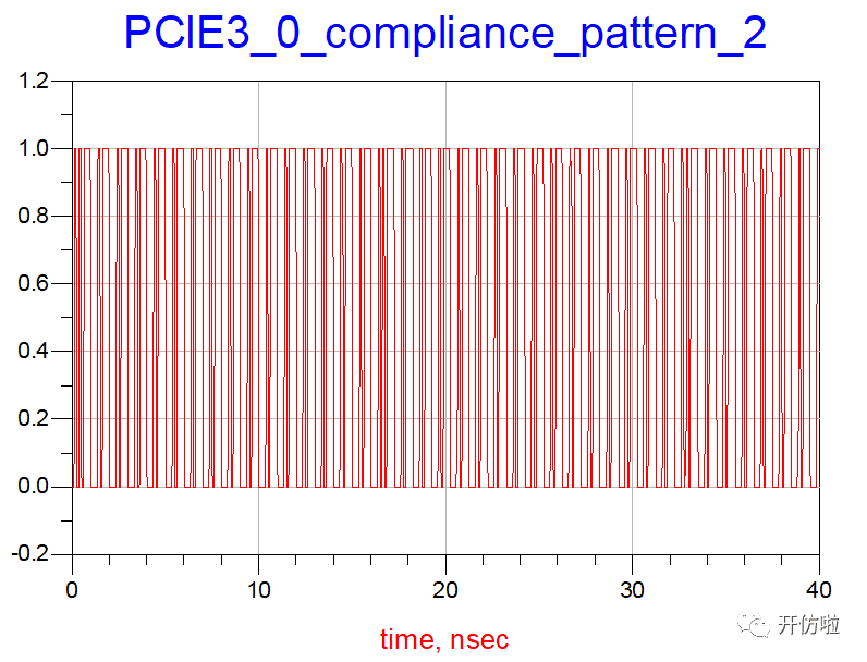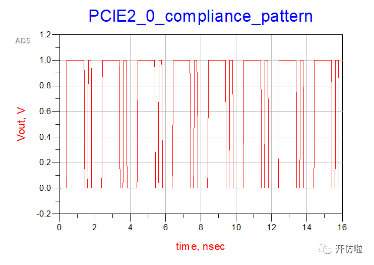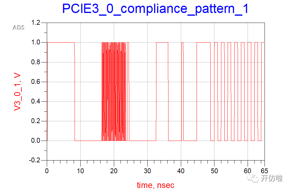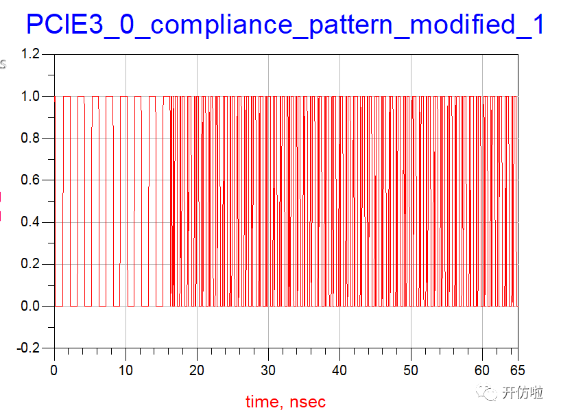 这样看还是比较抽象,我们用仿真软件来看一下测试码型波形如下: