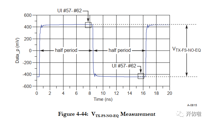 下图就为协议中采样64个bit1,在后面是64个bit0,来分析信号在没有任何均衡时的摆伏: