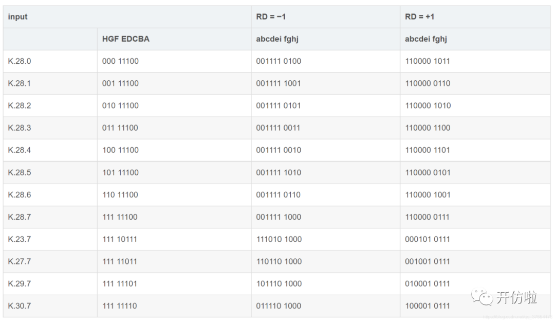 K码表示控制码,如K28.5,则表示控制码,101 11100
