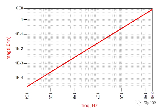 同样,我们也看一下电感的阻抗 VS 频率的曲线: