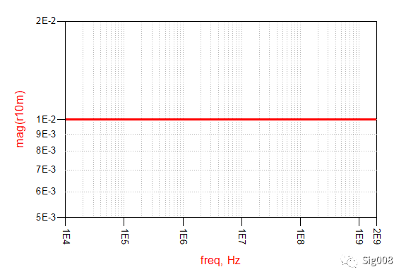 下面该电阻了,纯电阻的阻抗 VS 频率曲线如下: