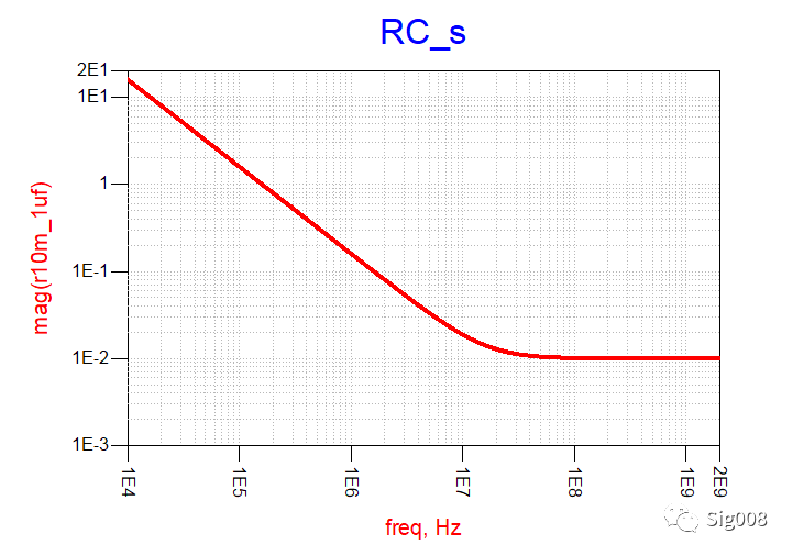 单个器件的阻抗特性知道了,那么他们串联之后是什么样的呢,下面请看电阻和电容串联: