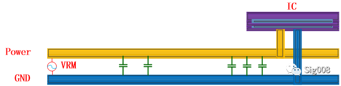电容在PDN(power distribution network)当中的示意图
