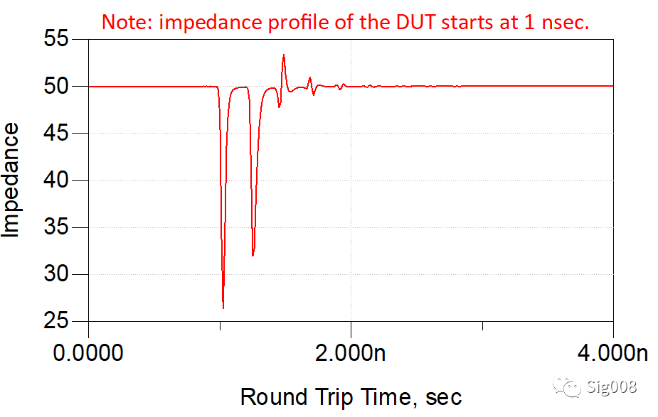 这说明,两个阻抗不连续点之间来回反射会使信号低频段恶化,而两个阻抗不连续点之间的距离越大,这种表现越明显,信号开始受影响的频率也越低;