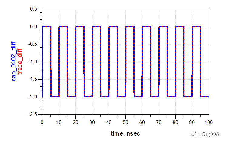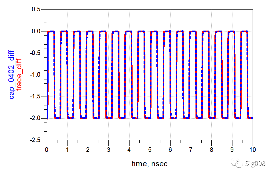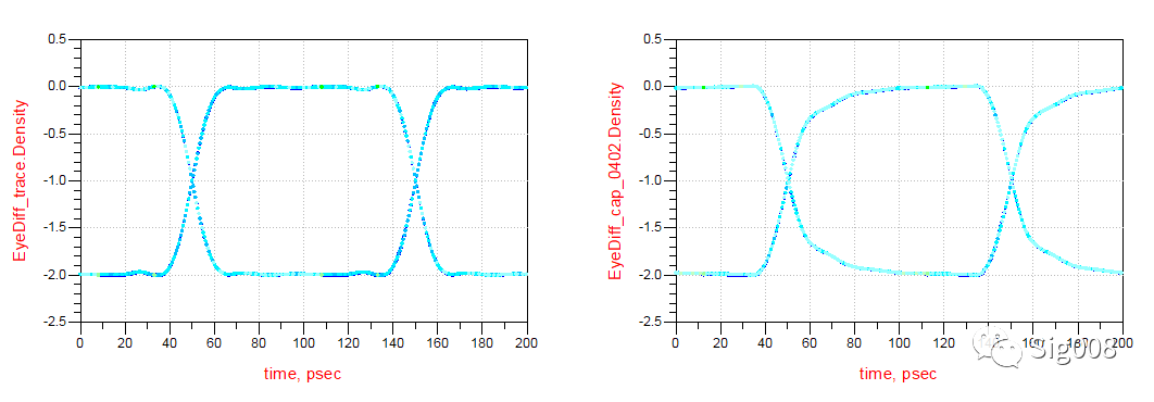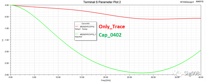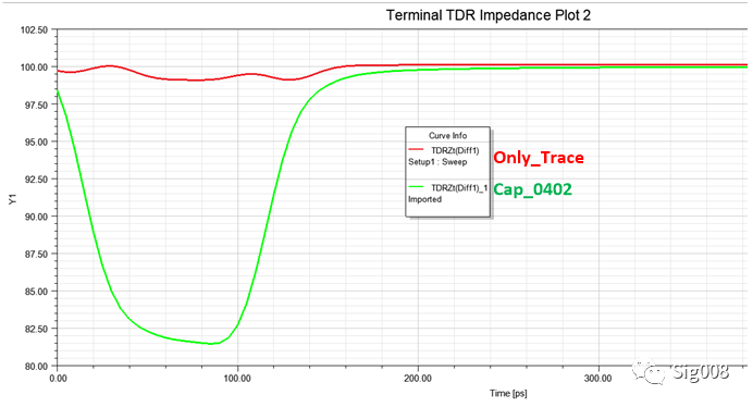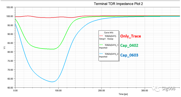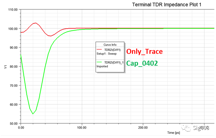 但是现在还不能说焊盘这里没有影响,因为,现在只考虑了电容焊盘这里,没有考虑其他阻抗不连续,这也就是为什么还要考虑电容的位置;