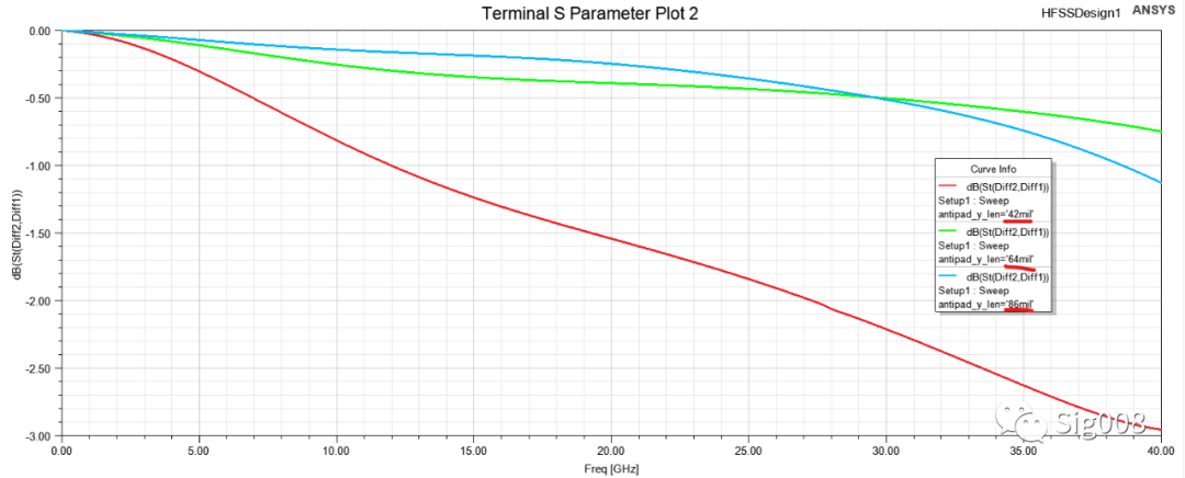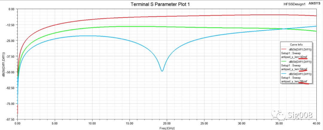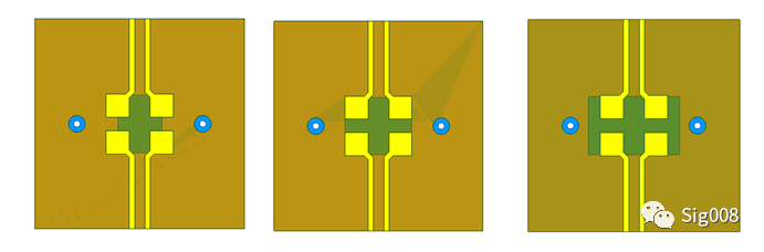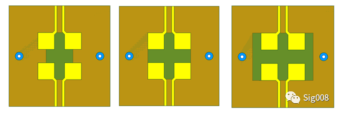 对于0402的焊盘而言,在第2层进行掏空,掏空后,焊盘参考第四层,可以看到这样的趋势,掏空尺寸越大,阻抗越大,尺寸稍稍大于焊盘尺寸时,阻抗比较好。