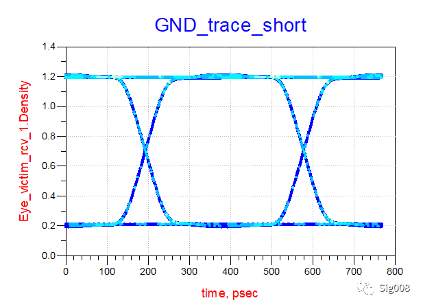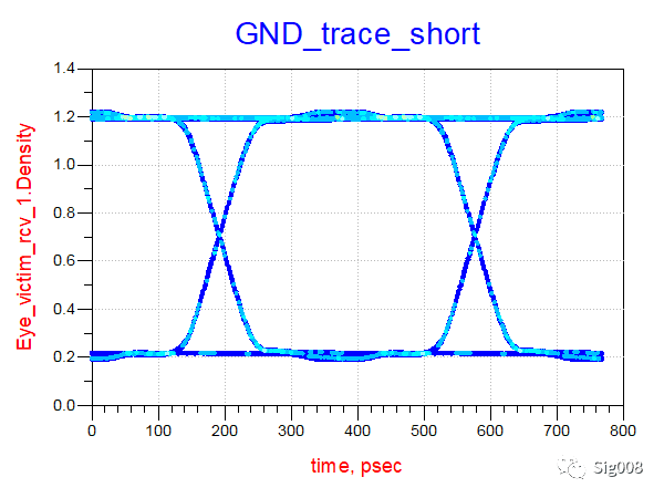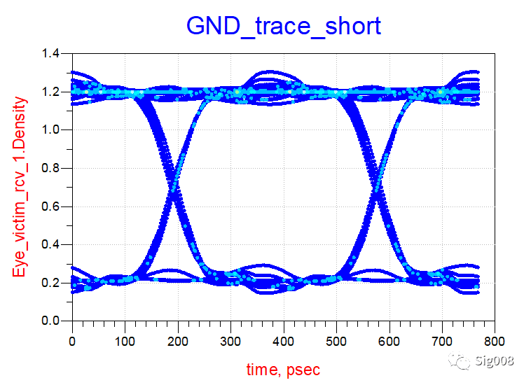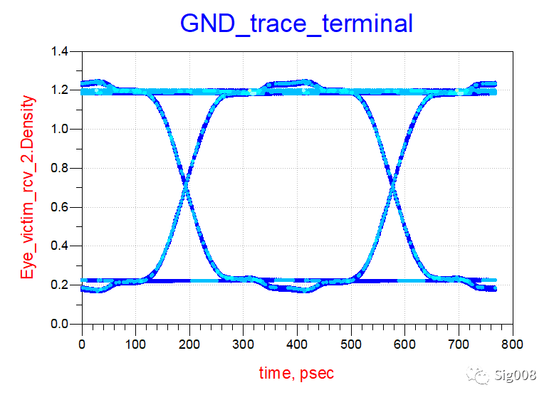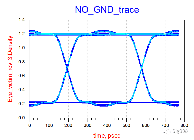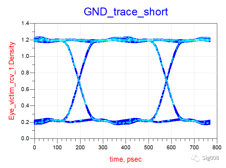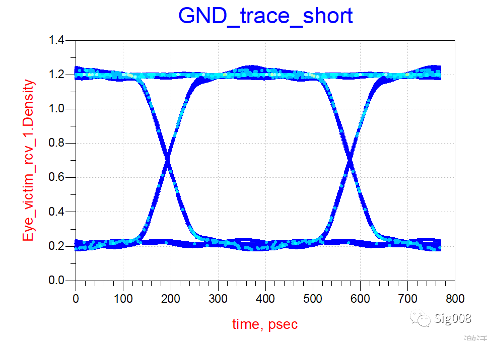 在此基础上,进一步在包地线中平均的加入地孔后,眼图如下: