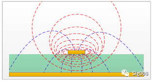 而对于电流分布仿真时,软件并不关心传输路径和参考路径的电气网络是什么,这也就是说,微带线这种物理结构本身就为信号在其中传播提供了物理环境,这当然是因为,两个导体中间存在互容、互感,因此在参考路径中耦合出了返回电流,也因此,信号可以在其中传播。