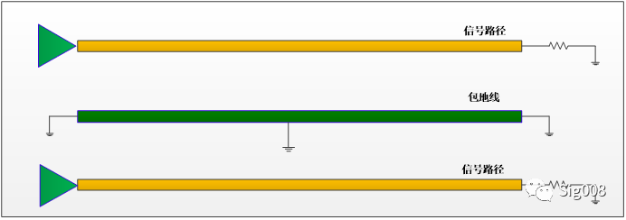 3、注意,包地线也是传输线结构,信号同样能够耦合到包地线中,而包地线是没有端接的;