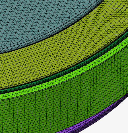 做了基本的几何清理后,SimLab 基本可以一键划分四面体网格,网格质量也很不错。下图是网格的局部特写。