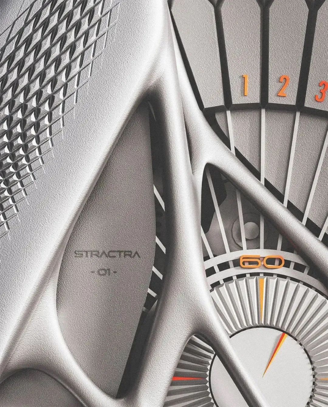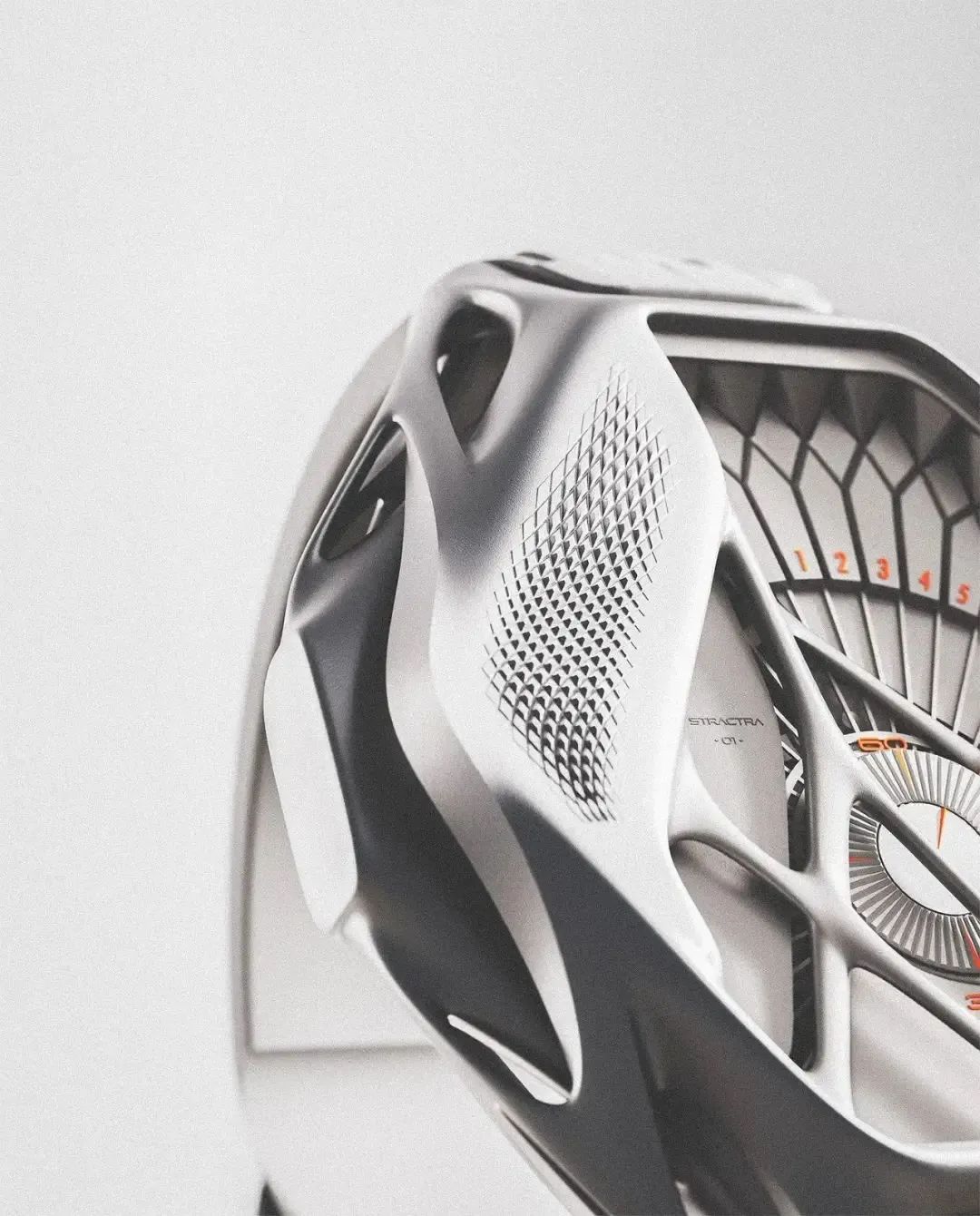 这位创意总监通过名为STRACTRA的概念腕表给出了答案:一块采用3D打印钛金属技术制成的时计,其有机网状结构如同外星生物的外骨骼,完全颠覆了传统制表的工艺美学。