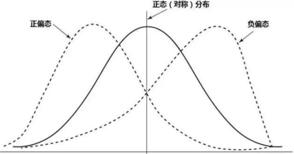 当偏度=0时,表示数据分布完全对称,左右尾部长度相等,例如正态分布的偏度即为0。当偏度>0时,称分布为正偏,较多的数据值偏离了平均值向左侧集中;当偏度<0时,称分布为负偏,较多的数据值偏离了平均值向右侧集中。若显著异于0,则说明分布与正态有较大的偏离。