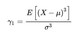 偏度,也称偏度系数,是用来衡量统计数据分布的偏斜方向和程度的指标,描述了概率分布密度曲线相对于平均值的不对称性。偏度定义为: