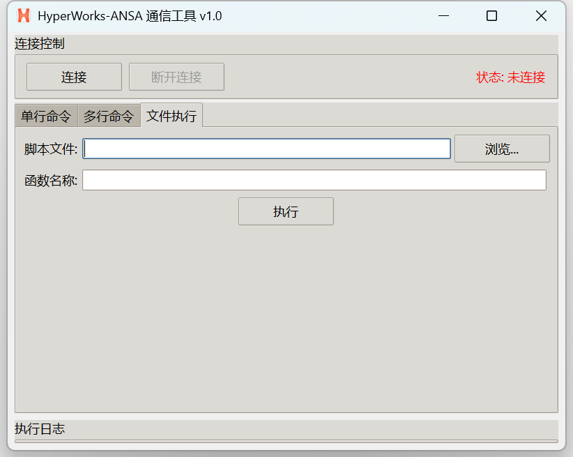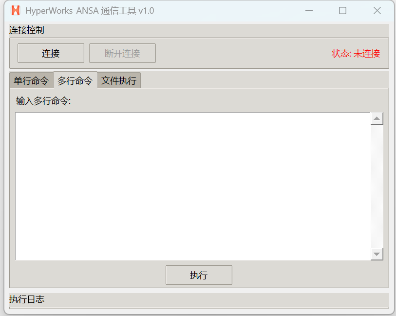 基于这一理念,我们开发了跨平台CAE流程自动化系统,其界面如下图所示,ansa支持单行命令,多行命令,py文件的方式,所以针对性开发了三个不同的界面: