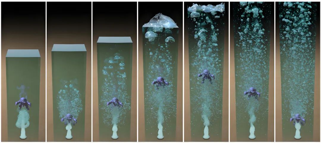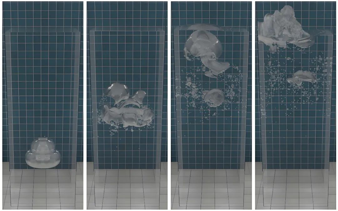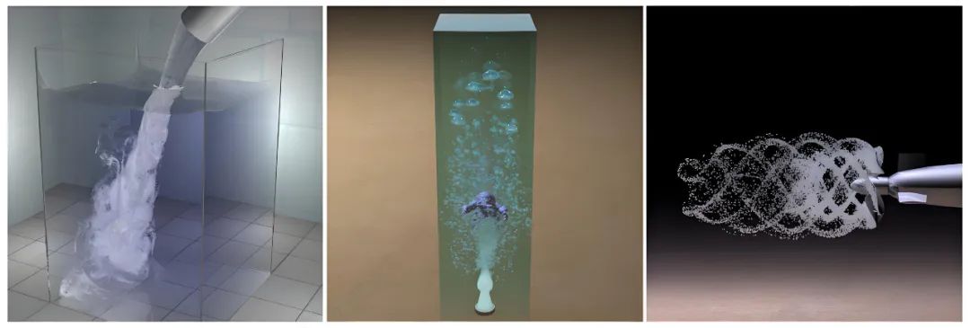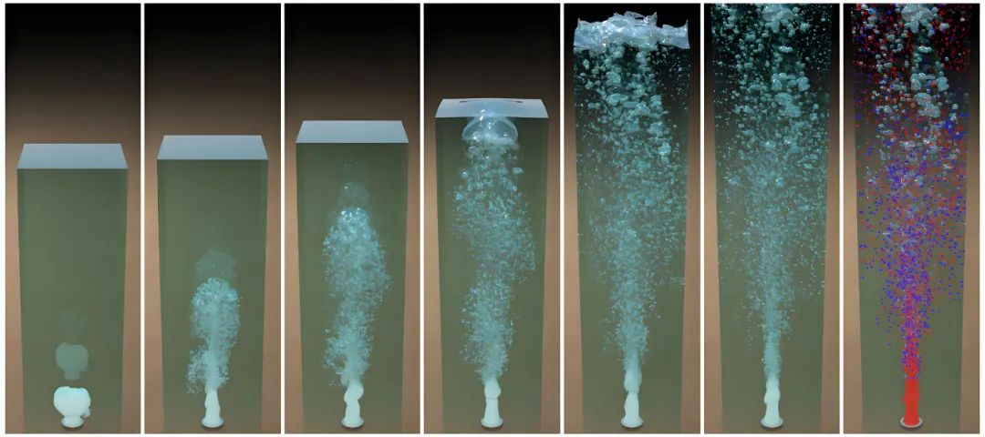 基本的技术思路: 未解析的小气泡使用与周围流体双向耦合的拉格朗日粒子进行跟踪。一旦这些气泡长大到可以在欧拉网格上解析,它们就被转换为相应的水平集表示,并使用完全耦合的单一泊松求解器进行求解,以模拟这些气泡的可压缩性。此外,每当水平集由于欧拉网格上的未解析特征而失去空气质量时,都会转换回拉格朗日气泡表示。