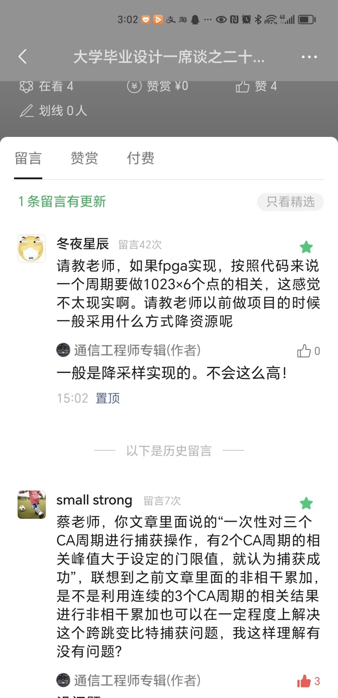 那么在实际产品中的做法是粗搜索的时候就是采用半码片步进,然后再精搜索高分辨率模式下的码相位。信号跟踪的时候采用的是高分辨率模式,比如一个码片四个采样点参与相关运算。