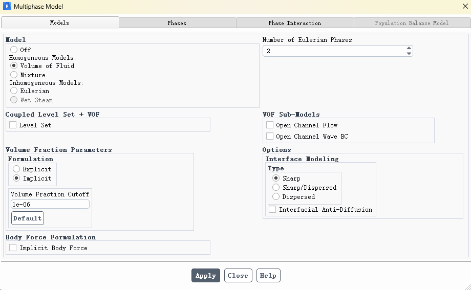 VOF模型是一种应用于固定欧拉网格的表面捕获技术,用于两种或更多的不混相流体,进行流体界面重构。