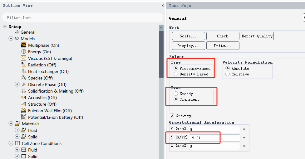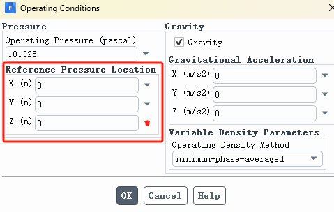 如果存在与压力相关的边界,则不使用参考压力位置面板条目。